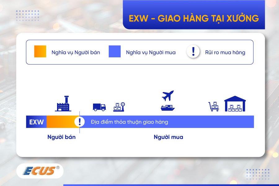 Các yếu tố quan trọng của điều khoản EXW Giao tại xưởng trong Incoterms, bao gồm: