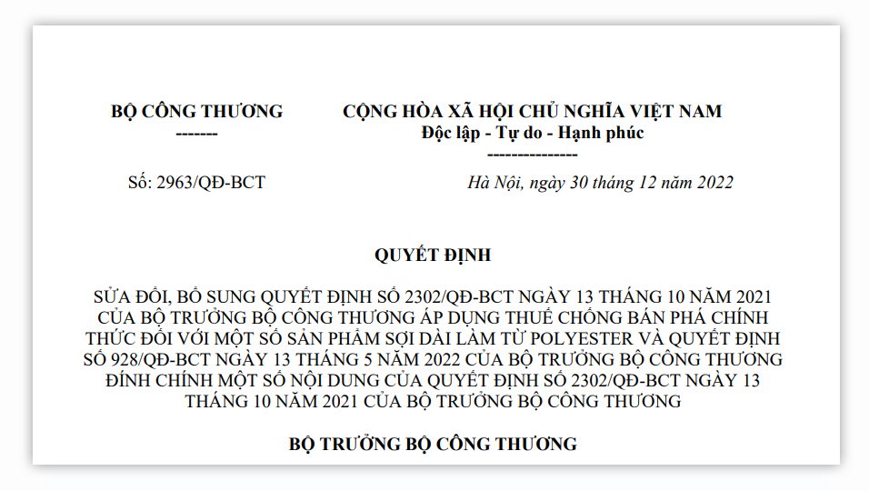 Quyết định số 2963/QĐ-BCT của Bộ Công thương